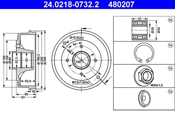 | Bremstrommelhöhe gesamt (mm) | 83.0 |