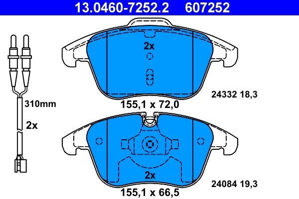 Der Bremsbeläge mit der Artikelnummer 13.0460-7252.2 von ATE ist ein hochwertiges Ersatzteil für eine zuverlässige und sichere Fahrzeugfunktion. Das Produkt Bremsbelagsatz, Scheibenbremse (13.0460-7252.2) wurde nach strengen Qualitätsstandards gefertigt und bietet eine präzise Passform für kompatible Fahrzeuge.